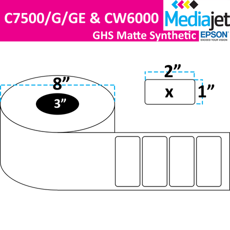 <strong>2" x 1"<strong><br>Die Cut GHS Matte Synthetic Inkjet Labels<br>(2 Rolls)