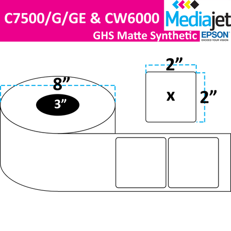 <strong>2" x 2"</strong><br>Die Cut GHS Matte Synthetic Inkjet Labels<br>(2 Rolls)