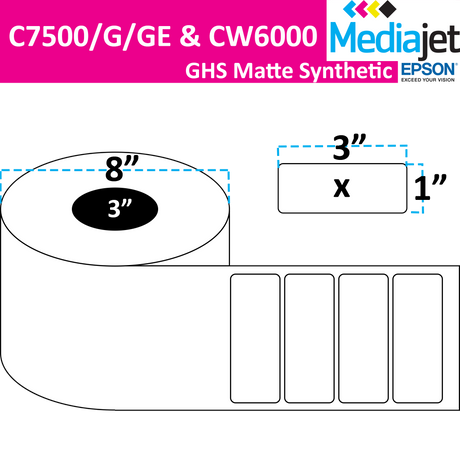 <strong>3" x 1"</strong><br>Die Cut GHS Matte Synthetic Inkjet Labels<br>(2 Rolls)