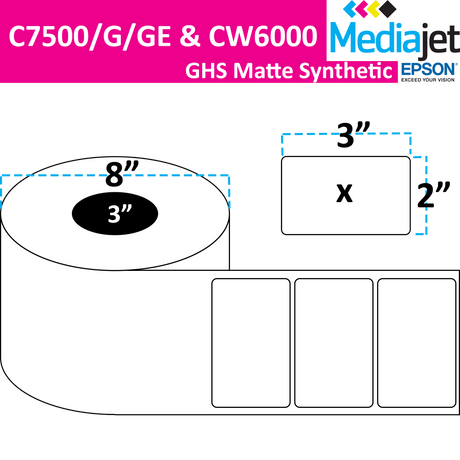 <strong>3" x 2"</strong><br>Die Cut GHS Matte Synthetic Inkjet Labels<br>(2 Rolls)