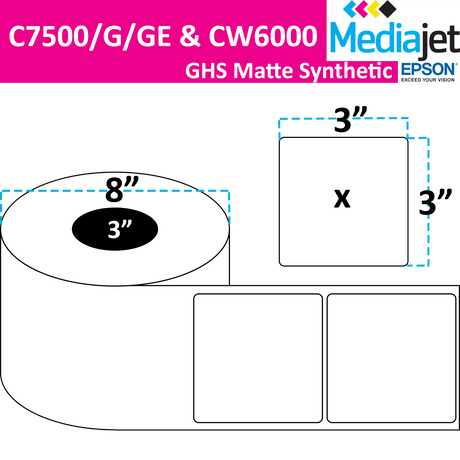 <strong>3" x 3"</strong><br>Die Cut GHS Matte Synthetic Inkjet Labels<br>(2 Rolls)