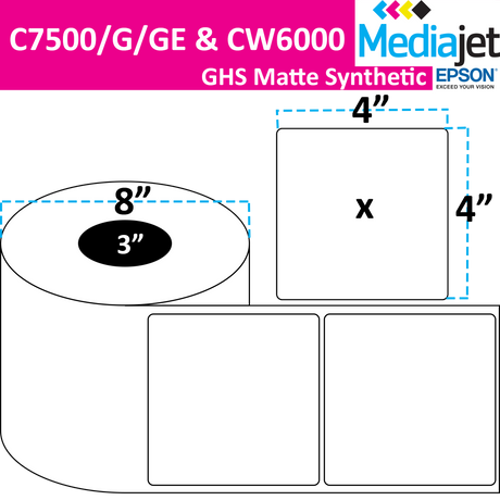 <strong>4" x 4"</strong><br> Die Cut GHS Matte Synthetic Inkjet Labels<br>(2 Rolls)