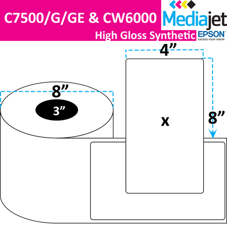 <strong>4" x 8"</strong><br>Die Cut Gloss Synthetic Inkjet Labels<br>(2 Rolls)