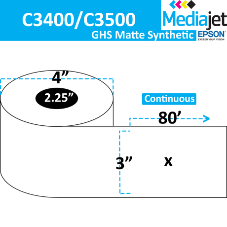 <strong>3" x 80'</strong><br>Continuous GHS Matte Synthetic Inkjet Labels<br>(12 Rolls)