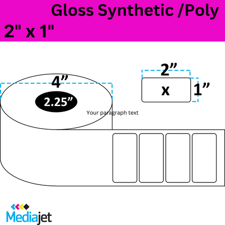 <strong>2" x 1"</strong><br>Die Cut Gloss Synthetic Inkjet Labels<br>(8 Rolls)