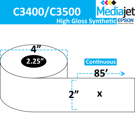 <strong>2.25" x 85'</strong><br>Continuous Gloss Synthetic Inkjet Labels<br>(12 Rolls)