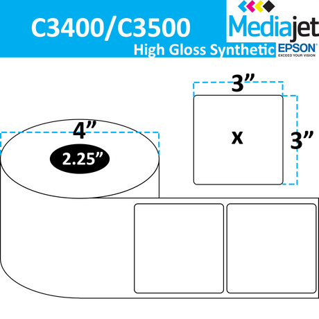 <strong>3" x 3"</strong><br>Die Cut Gloss Synthetic Inkjet Labels<br>(8 Rolls)