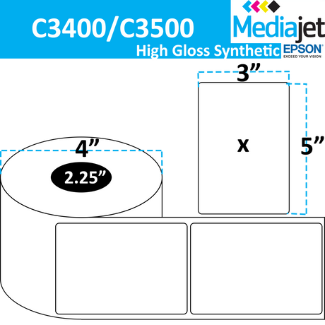 <strong>3" x 5"</strong><br>Die Cut Gloss Synthetic Inkjet Labels<br>(8 Rolls)