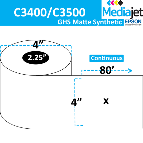 <strong>4" x 80'</strong><br>Continuous GHS Matte Synthetic Inkjet Labels<br>(12 Rolls)